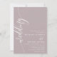 Invite loved ones to celebrate your special day with this elegant dusty lavender wedding invitation. Featuring a minimalist design with a beautiful calligraphy script for the word "wedding" and clean, modern typography for the details, this invitation sets the tone for a sophisticated and memorable event. The soft dusty lavender purple colour and simple lines add a touch of grace and refinement, making it ideal for a stylish wedding celebration. Customise the details to create a unique and beautiful invitation for your wedding day.