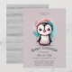 Dusty Lilac Cute Penguin Winter Girl Baby Shower Invitation