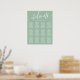 Welcome your guests with this elegant dusty mint green wedding seating chart. Featuring a minimalist design with modern script, this seating chart is perfect for a sophisticated and stylish wedding. The soft colour and clean layout provide a refined and organised look, ensuring your guests can easily find their seats. Customise with your table arrangements to create a unique and cohesive addition to your wedding decor. This seating chart accommodates up to 12 tables, making it ideal for a well-planned and elegant celebration.