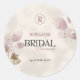 The phrase "Bridal Shower" is elegantly displayed within the design, often utilising a sophisticated script or a refined font choice that truly sets a distinguished tone for the occasion. Elegantly positioned at the top of the sticker is a distinguished monogram or initial, creating an immediate sense of personalised distinction. Beneath this beautiful detail, the name of the bride-to-be and the event date are clearly and stylishly displayed, creating a truly custom and memorable accent for your special day.
