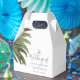 A unique palm tree-themed set of white gift favour boxes tailored specifically to your future wedding on the beautiful coast, island or even a summertime event. There is your wedding details on the front and your unique wedding guests thank you message on the reverse side.