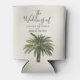 A unique palm tree-themed set of can coolers in a sandy brown colour tailored specifically to your future wedding on the beautiful coast or island.
