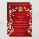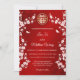 Dusty pink cherry blossom branches, two butterflies and a gold double happiness symbol on a red background. With custom initials at the backside.