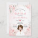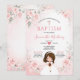 Dusty Pink Cross Floral Girl Praying Holy Baptism Invitation