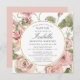 Dusty Pink Floral Gold Round Frame Baptism Invitation