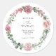 Elegant dusty pink floral round wedding sticker with watercolor roses for favors and envelopes.