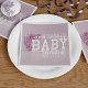 Pink baby shower? Add your name and date to these dusty pink paper napkins.