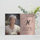 Dusty Pink, Gold, black, simple, photo, elegant, feminine, adult, typography, sparkle, glam, watercolor 90th Birthday party, ninetieth invitations. Personalise it with your details.