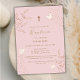 Dusty Pink Gold Leaves Butterfly Cross Baptism Invitation