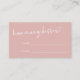 Dusty Pink Minimalist Script How Many Kisses Game Enclosure Card