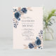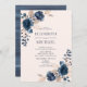 Dusty Pink Navy Blue Flowers Rustic Wedding Invitation