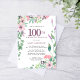 Honour a special woman with this elegant and feminine 100th Birthday party invitation. 100th is written in large dusty purple text. Birthday celebration follows. The honoured guest's name is also in blue capital letters. The birthday celebration details are surrounded by purple and pink country meadow wildflowers. The floral elements are nestled in green leaves and foliage. While it is a traditional design, the open and airy botanical foliage and text give it a contemporary vibe. This invitation is part of the Dusty Pink Purple Wildflower 100th Birthday collection.