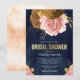 Dusty Pink Rose Earthy Floral Navy Bridal Shower Invitation