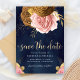 Dusty Pink Rose Earthy Floral Navy Wedding Save The Date