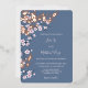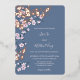 This classic floral wedding invitation features dusty pink and real rose gold foil cherry blossom branches on a dusty blue background. Bride and groom names in a elegant handwritten script. Matching products with only dusty pink cherry blossoms available.
