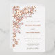 Delight in the elegance of my floral rose gold blush pink and white wedding invitation, where timeless beauty meets contemporary style. This exquisite invitation sets the tone for a romantic celebration, featuring delicate cherry blossoms in shades of blush pink, gracefully intertwined with touches of real rose gold accents set against a white background. The luxurious combination of blush pink, rose gold and white creates a stunning visual harmony, making it the perfect choice for couples seeking a refined and romantic aesthetic for their wedding day.
