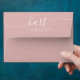 This elegant dusty pink return address envelope design features a sweeping calligraphy-style surname paired with a refined serif font for a beautifully balanced, modern look. Printed in crisp white on a soft blush-toned envelope, it’s perfect for wedding invitations, bridal showers, holiday cards, or any occasion that calls for a stylish and feminine finishing touch. Positioned on the envelope flap, this design adds elegance and personality to your mail. Fully customisable with your name and address.