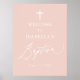 Dusty Pink White Cross Girl Baptism Welcome Sign