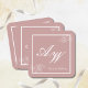 Dusty Pink & White Custom Wedding Square Paper Coaster