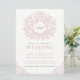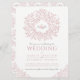 Dusty pink white hand drawn leaf monogram wedding invitation