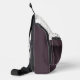 This sling bag features a dusty plum band with a white personalised name separating the tawny polka dots up top from dusty plum on plum stripes below.