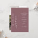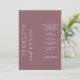 This invitation features modern typography giving a clean and simple block serif typography with a dusty purple background. The simplicity and clean design of this invitation works well with all wedding themes and definitely a great addition to your wedding.