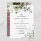 Please note: The elegant beautiful typography wording phrases of "kindly", "and", and "reception to follow" on the front of the invitation AND "details + kindly respond" on the back of the invitation along with the watercolor greenery foliage eucalyptus leaves arrangements and other graphic artwork elements like the lines and rectangle boxes cannot be edited, changed, moved, or deleted. They are fixed.