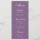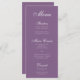 A simple menu that has a  modern colour, dusty purple, and uses elegant calligraphic script for title and subtitles. All text is white.