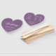 A simple but elegant heart shaped wedding program fan for a dusty purple wedding colour. The titles and the names (and the initials) of the bride and groom are written in an elegant calligraphic script, the rest in caps. The background is dusty purple, the text is white. On the back, it has on the left side the wedding ceremony program and, on the right side, the wedding party (with 2 different columns for the bride team and groom team). and under them a short Thank you message.