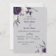 dusty purple and white flowers with some silver leaves on grey wedding invitation.