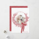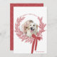 Dusty Red Christmas Wreath Minimal Photo Holiday Card