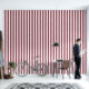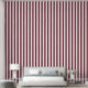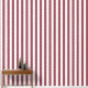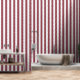 A dusty red and white three inch wide circus stripe wallpaper.