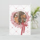 Dusty Red & White Christmas Wreath Photo Holiday Card