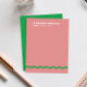 A wavy line in preppy Kelly green looks modern on a solid ground of dusty rose pink with simple editable text for easy customisation making these flat note cards a design forward choice for any creative's business stationery.