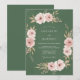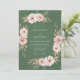 A romantic arrangement of soft blush pink roses and delicate greenery adorns a deep sage green backdrop. This design evokes a sense of understated elegance and natural beauty. Perfect for a refined occasion.