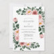Delicate blush pink blooms and lush green foliage create an enchanting botanical scene. This design evokes a romantic and serene atmosphere, perfect for a springtime affair. The soft color palette and abundant florals lend a timeless elegance.