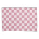 Pink and white checkerboard pattern with evenly spaced squares. The design is simple, creating a playful and retro feel.