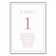 Dusty Rose Classic Table Number with Seating Chart