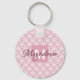 This beautiful keychain features a classic white damask pattern over a dusty rose or pink background. The design is personalised with a monogram initial letter as well as a customisable name for a simple yet elegant look. Perfect gift for any woman who wants a personalised keychain.