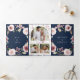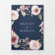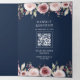 Dusty Rose Floral Ampersand QR Code Navy Wedding Tri-Fold Invitation