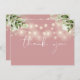 Dusty Rose Floral Greenery String Lights Thank You Card