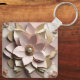 The key chain is made of metal and really sturdy. The flower design is really cheerful. The logo and colors are clear and crisp!