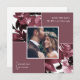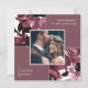 Beautiful and chic dusty rose colour geometric grid with lovely pink and white watercolor floral bouquet photo wedding save the date announcement with solid white back of the card.