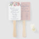 These dusty rose florals wedding program fans are perfect for a spring or summer wedding. The romantic floral design features lilac purple, blush pink and peach flowers arranged in a gorgeous soft pastel bouquet. Include the name of the bride and groom, the wedding date and location, thank you message, order of service, and bridal party. Order your programs assembled or non-assembled.
