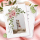Dusty rose pink watercolor flowers, arch with photo Thank You spring and summer wedding flat card. This lovely wedding design features an arch frame with dusty rose cactus flowers and green leaves on the left corner and your photo. The names are in script typography on the back in rose pin k.
