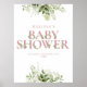 An elegant baby shower sign featuring modern dusty rose pink typography and pretty botanical greenery foliage. Designed by Thisisnotme©