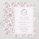 Add timeless elegance to your special day with this chinoiserie-inspired wedding invitation, featuring a delicate dusty rose floral toile border and an elegant monogram crest design on top.