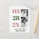 Dusty rose, moss green two photo Save the Date Postcard