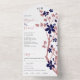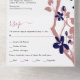 Dusty rose, navy blue branch with flowers wedding all in one invitation