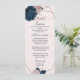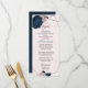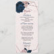 beautiful dusty rose and navy blue flowers and elegant leaves geometric wedding menu.